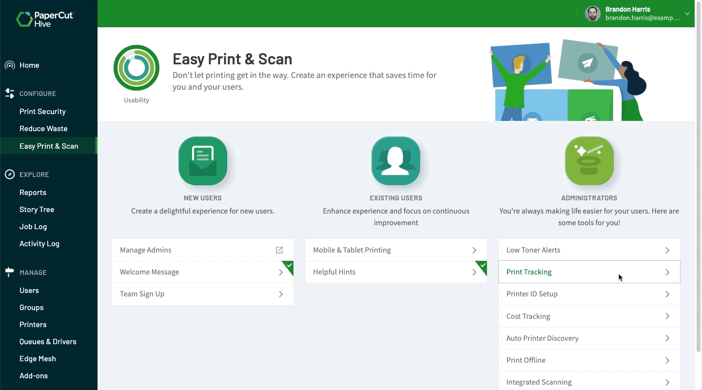I turned it into an opportunity by mapping out common admin discovery paths, where they would naturally encounter this option. I updated the copy, refined the design, and added strategic tips to enhance their print environment with improved tracking.