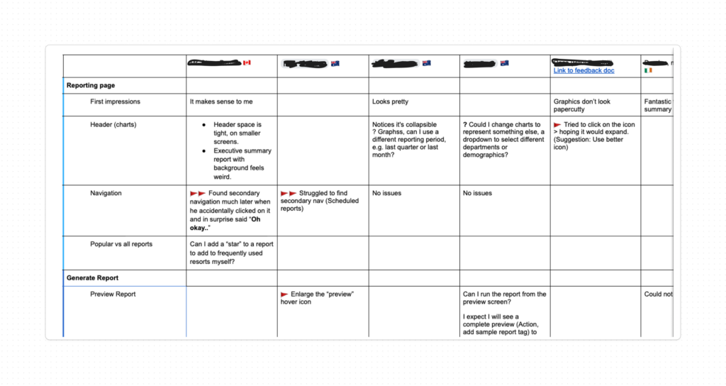 User testing highlighted several improvement areas requiring attention. I implemented a ‘3 flags’ reporting system to pinpoint minor issues and confusing designs needing resolution before moving forward.