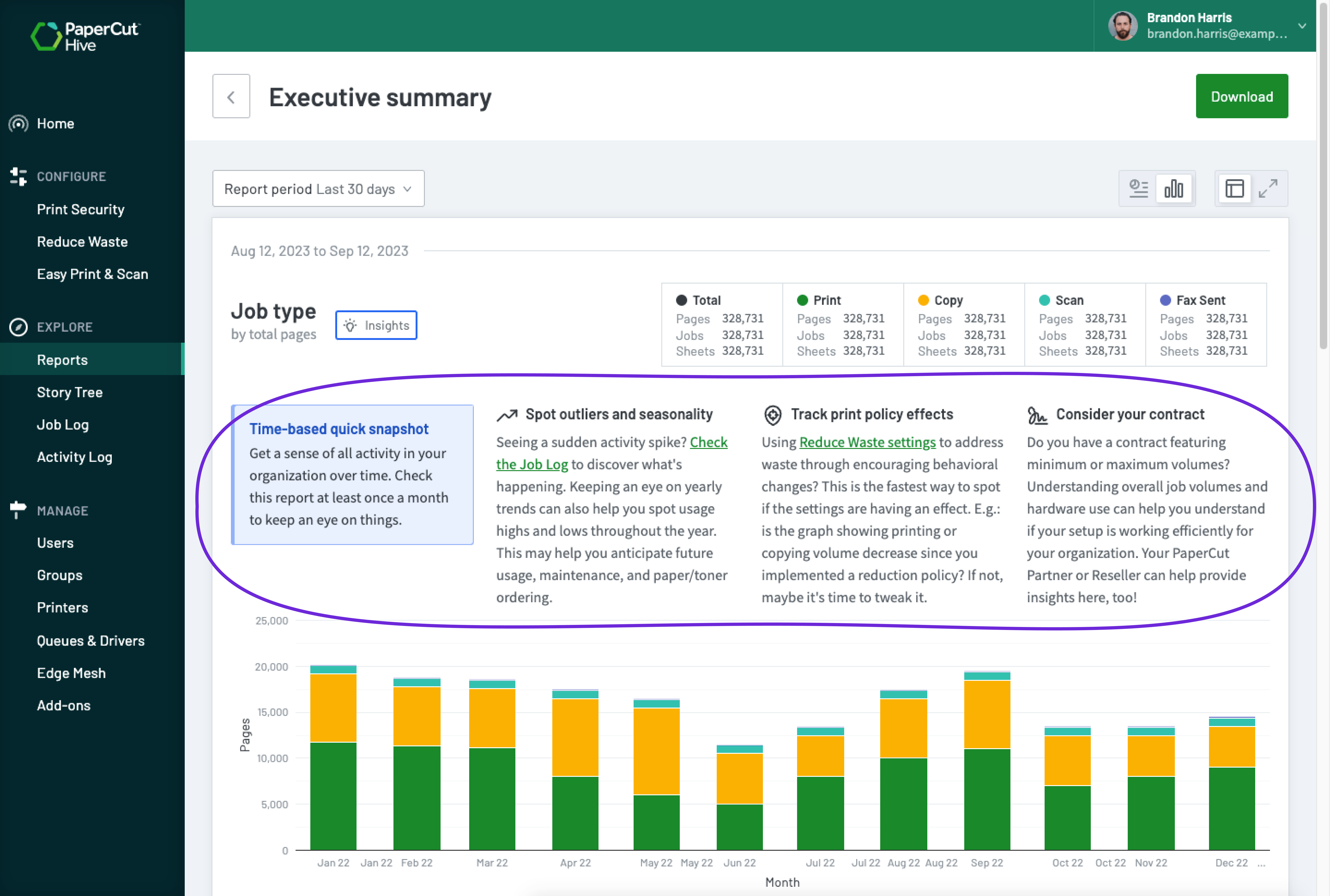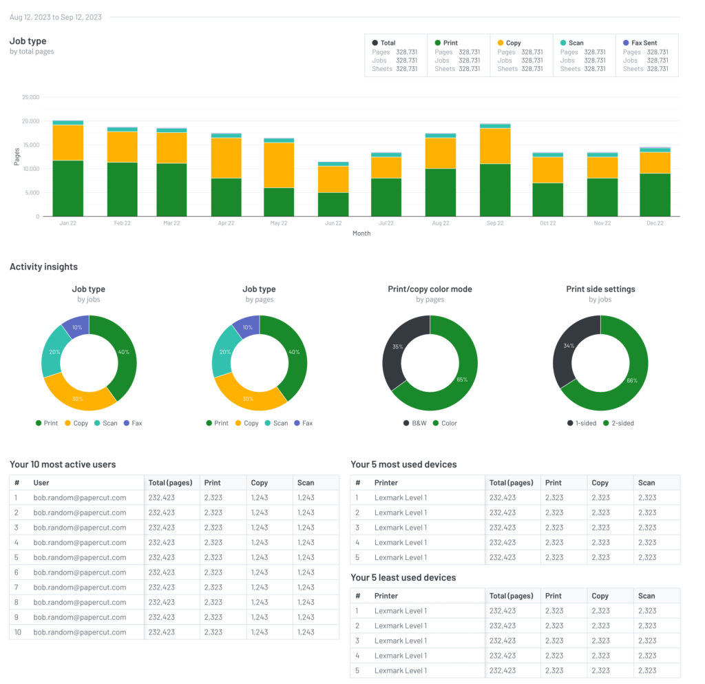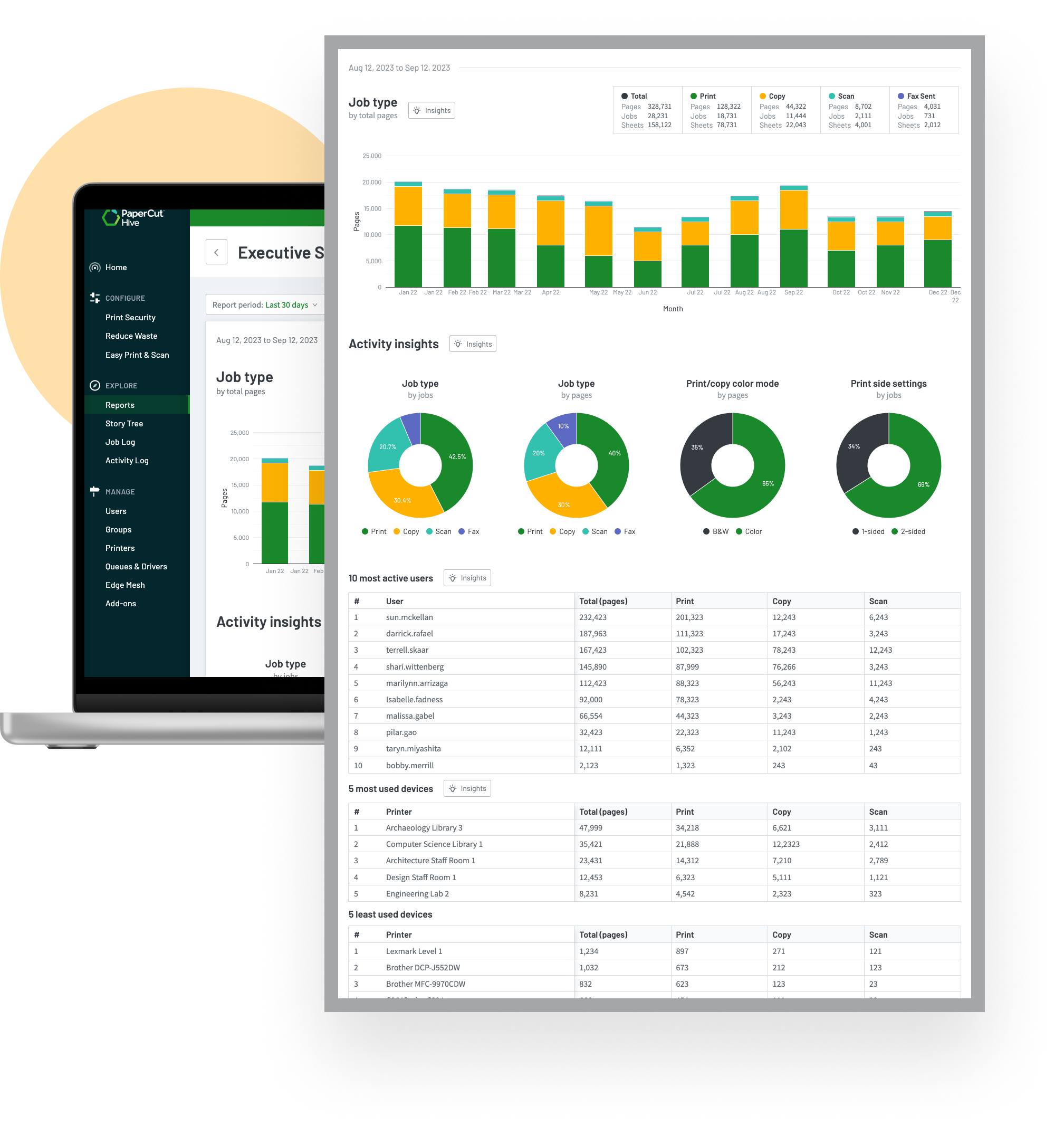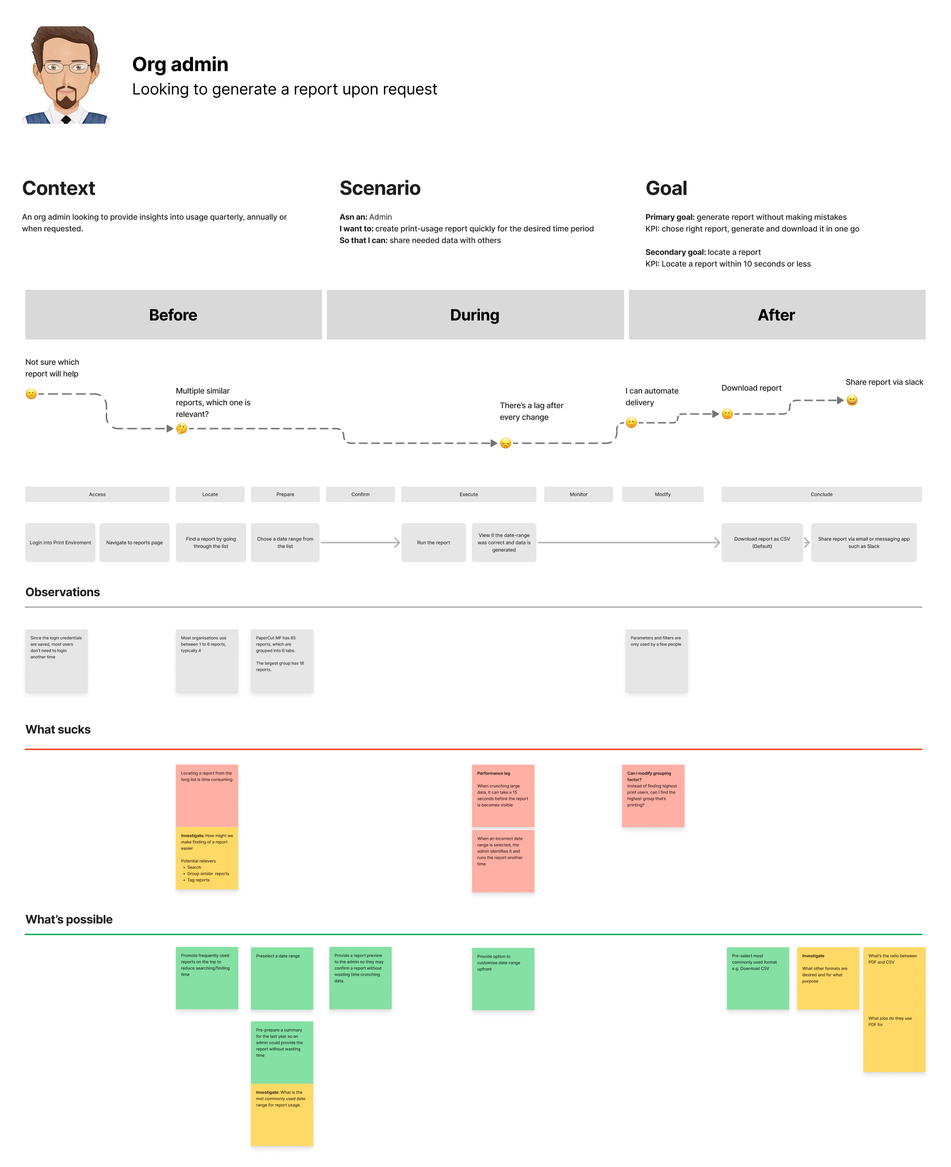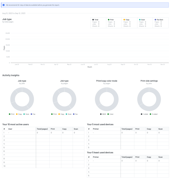 Our product can track every aspect of print activity, yet the provided information is fragmented. As a result, org admins fail to spot opportunities to reduce waste and improve resource utilisation.