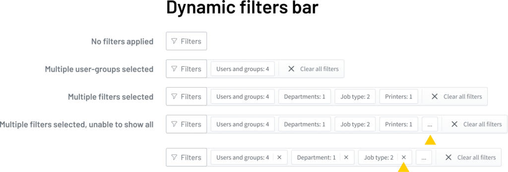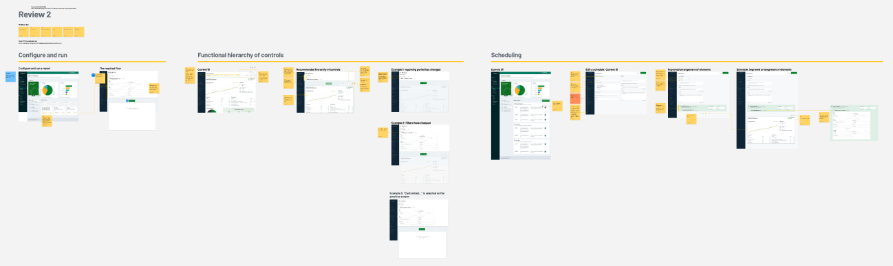 The complex filter and parameter system posed a significant design challenge, offering admins extensive control over report data. To address this, I led a collaborative workshop with SMEs and fellow designers. Together, we analysed filter usage scenarios and established a scalable design pattern capable of accommodating future filter additions. Below is a key outcome of this workshop.