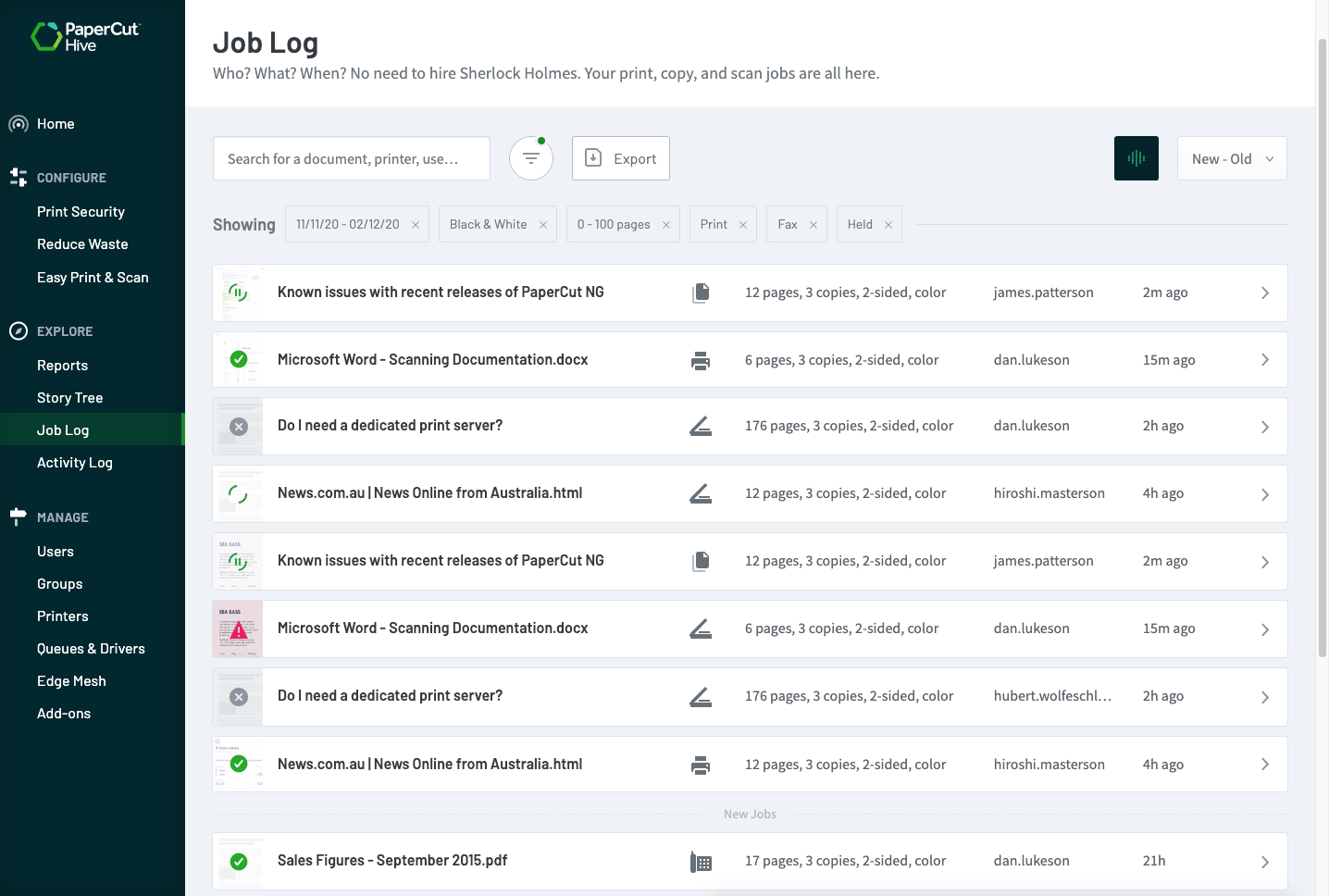 In the absence of reports, the admin struggled to convert available data (available as CSV) into meaningful insights, not they had ability to identify usage anomalies (e.g. print abuse) or trend-lines which or usage forecasting.