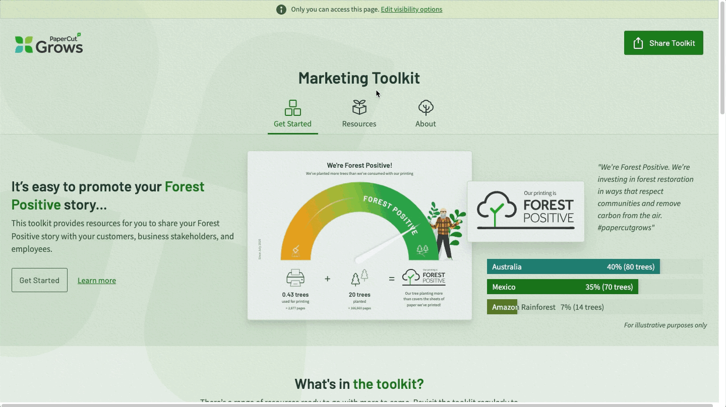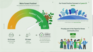 Environmentally conscious customers aspire to back sustainable paper production but face challenges in gauging their impact or determining suitable contributions. Consequently, they encounter difficulty motivating print users to save or participate in sustainable paper production efforts.